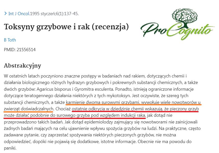 Pamiętajmy iż grzyby zawierają wiele substancji rakotwórczych. Ich obecność w diecie jest czynnikiem ryzyka powstawania nowotworów.